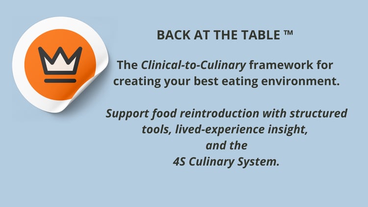 I help speech pathologists and dietitians bridge the gap between clinical recommendations and real-life eating for people with dysphagia. Through my BACK AT THE TABLE FRAMEWORK™️